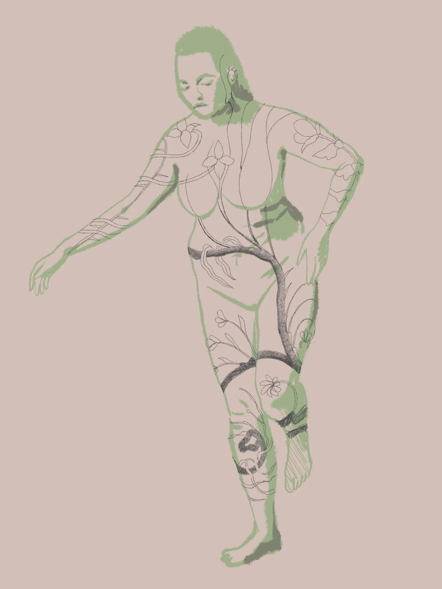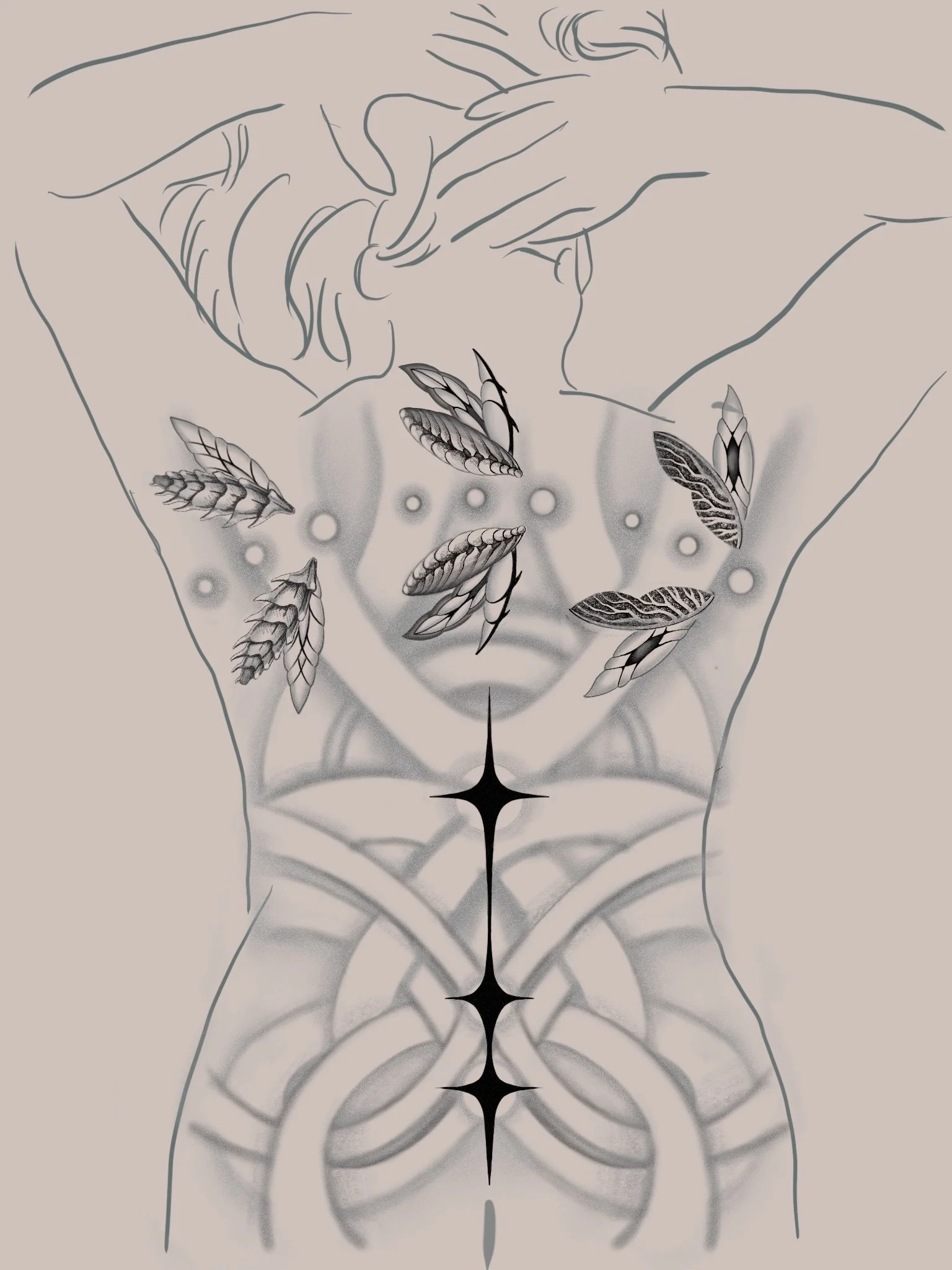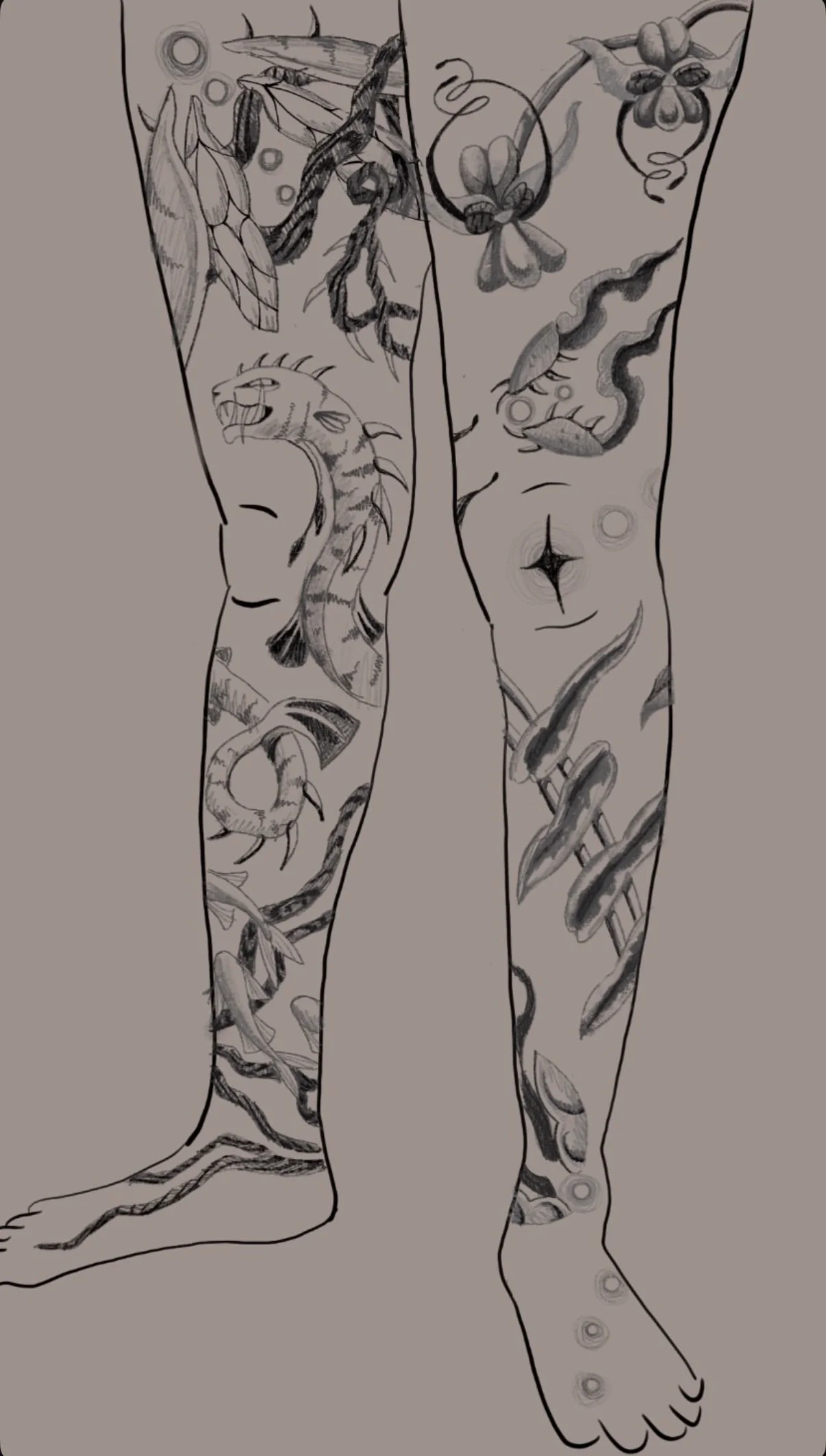 Lastly here are some freehand concepts - these appointments can be started with an idea in mind - or not. They are a collaborative process and can be very in the moment using any favorite elements of my work. My previously mentioned book was made for this purpose - to have most of my drawings in one space that we can use to look through and reference. These are all large scale but this work can be done in any size in most every placement.